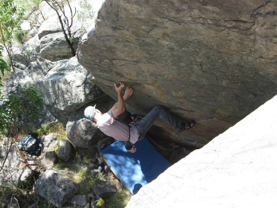 Peter Arcidiaco on the crux move of 'The Sickness'.