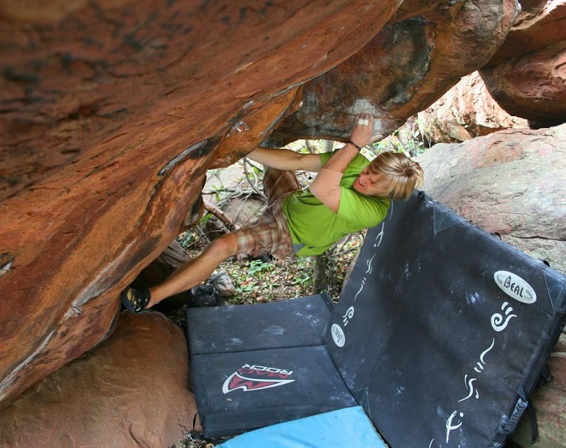 Marijus Šmigelskis on the first ascent of "Twisted Transistor"