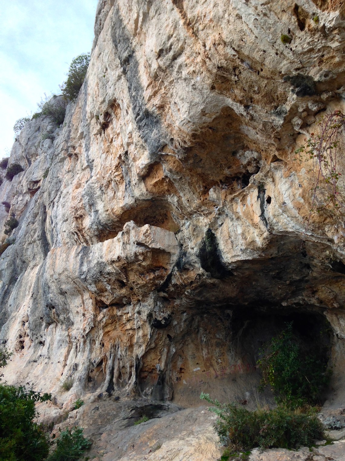 The bouldery start and resting ledge of Facile a faire