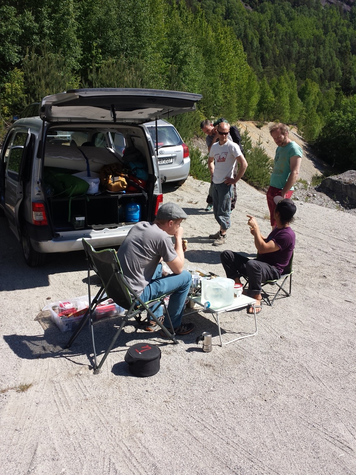Happy campers at the gravel pit parking.