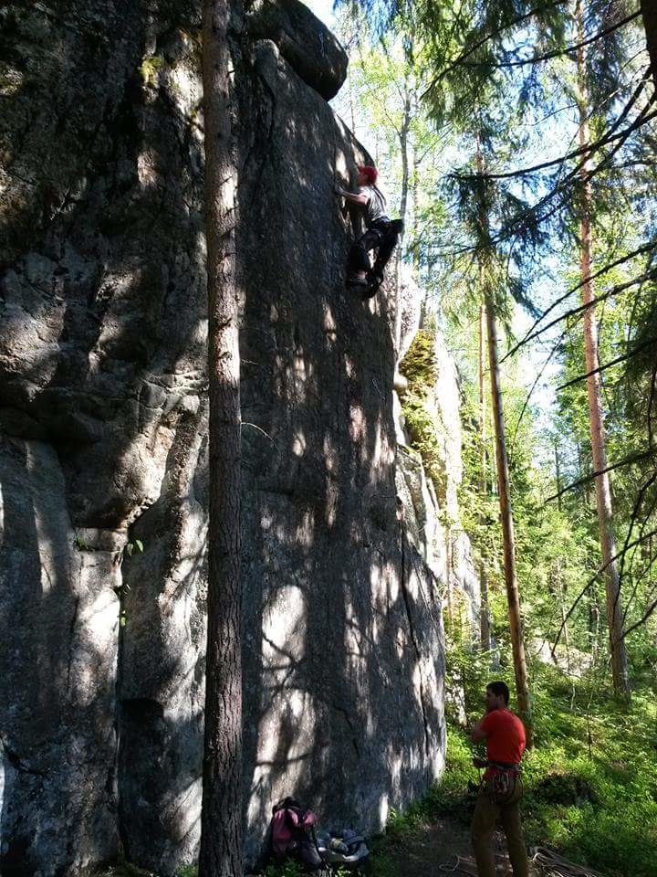 Juho climbing Valdemar (6c).