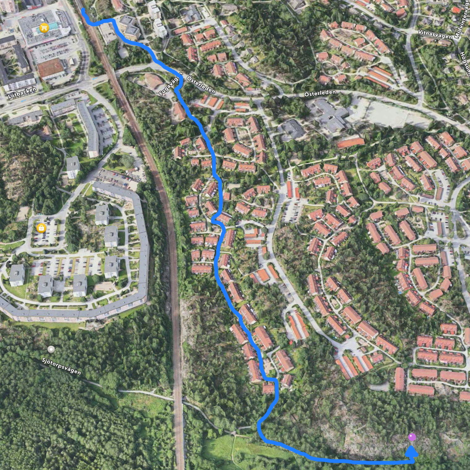 Promenadvägen från stationen till klippan.
