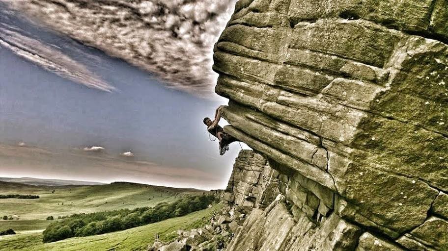 Dimitris Papageorgiou on Flying Buttress direct, Stanage