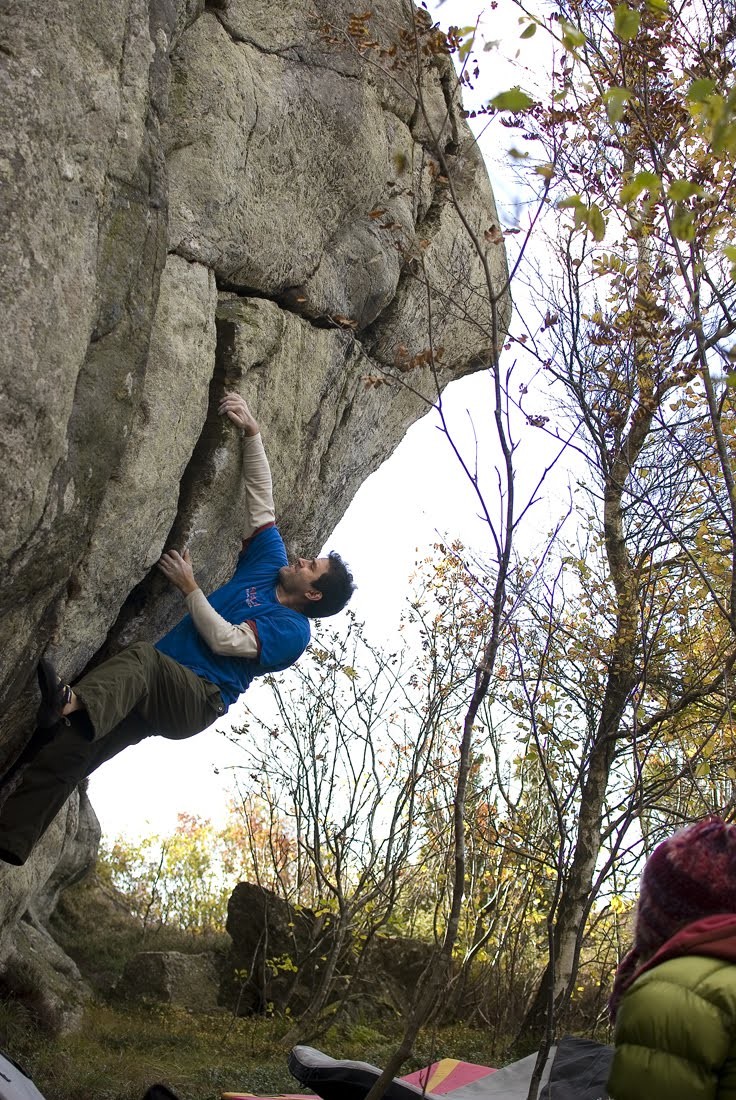 Pontus A på areten vid vägen. Sprickan är en fin klassiker. Fler projekt på klippan.