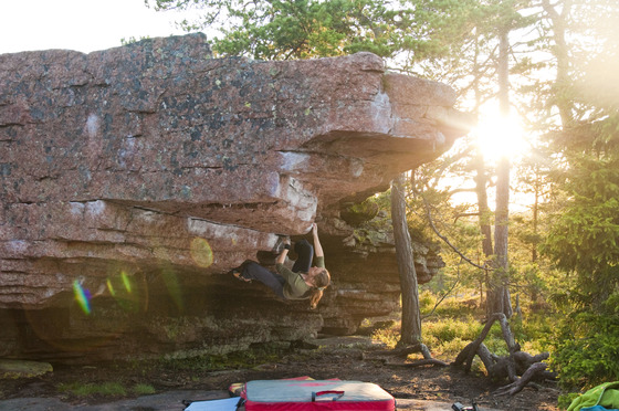 Åland (Ahvenanmaa in Finnish) islands are a gorgeous destination on the Baltic Sea in between of Finland and Sweden. Åland provide world-class bouldering, a little of rope climbing, and tons of activities for the rest days. Crags provide spectacular views over the ocean and the rough island nature. The Åland islands have three large boulder areas which could be called the classics: Djupviksgrottorna, Fågelberget, and Kasviken. Djupviksgrottorna, or Grottan in short, has big roofs, plenty of jugs and style in general is very similar to indoor routes. The rock is red granite which gets a beautiful glowing colour during sunset. The place provides fun and challenging routes for everyone from first timers to very experienced climbers. Fågelberget is a seaside cliff with a stunning view. It takes about an hour to hike there, but it's definitely worth it. In general, the routes are more spread out than in other two main areas. The rock quality is smooth. There are not that many routes for beginners, but the area has great quality routes from 5+/6A onwards up to 8B+. Kasviken is a forestry area providing a large concentration of hard routes. It has the shortest access and during summer it usually stays cooler than other two crags. These three, which are covered as Premium topos, will keep you busy for a long time, but there's also several medium-sized and smaller crags which can be found from as community topos. The season in Åland is often a bit longer compared to the mainland of Finland as it tends to stay warmer and drier. The best and driest period is spring (March-May) but you can often climb all the way until October if you don't mind the warmer temperatures during summer and the bigger chance for rain in the autumn. You can travel to Åland islands either by boat or plane. It is quite cheap to bring your own car by boat and it's recommended as it will make your life a lot easier because the public transportation is not very good in the island. You can take a direct ferry to Åland’s capital Mariehamn either from Helsinki, Turku, or Stockholm. There are several companies and campgrounds providing rental cabins and places for a tent. The shops and restaurants are easy to visit by car, but otherwise the distances are quite long. Please be aware of ticks while in Åland. The season starts around April May and lasts till the first night frosts. A large share of ticks carry diseases in the Åland, but daily tick checks should keep you safe. While at rocks, remember following: · Don’t block road while parking · Don’t walk too close to houses or fields · Clean trashes and tick marks