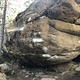 Fun project that Rocco had put up and then it broke. By Kill By Numbers on overhanging arete of Streaked boulder. Low end V10 but very fun movement!