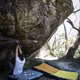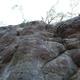 The slab climb, pretty trick hard V3, Move up to the this two finger pocket and mantle push your way up, first climbed about a decade ago! just putting some stuff in