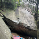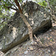 V2 with the current jungle of plants growing in the landing area as well as on the boulder itself.