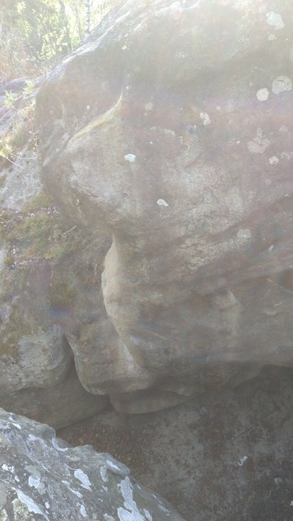 This might be a little bit tricky to find. But if you look to your left from Jete Michaud, this boulder is located between the rocks on the left. Don't give up, it's really close. If you wander around more than 15m you have gone too far =)