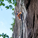 🇬🇧 Cliff immersed in the woods; in a cool and breezy area. The compact gneiss; the ease of access and the moderate difficulty of the pitches made it very popular right away. Especially on summer afternoons, where the mild climate provides a bit of fresh air