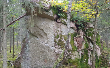 🚶 From the parking, cross the paved road and follow the old tractor tracks north/north-west. About 100 meters after you passed the old clearing for powerlines the boulders are on your right.