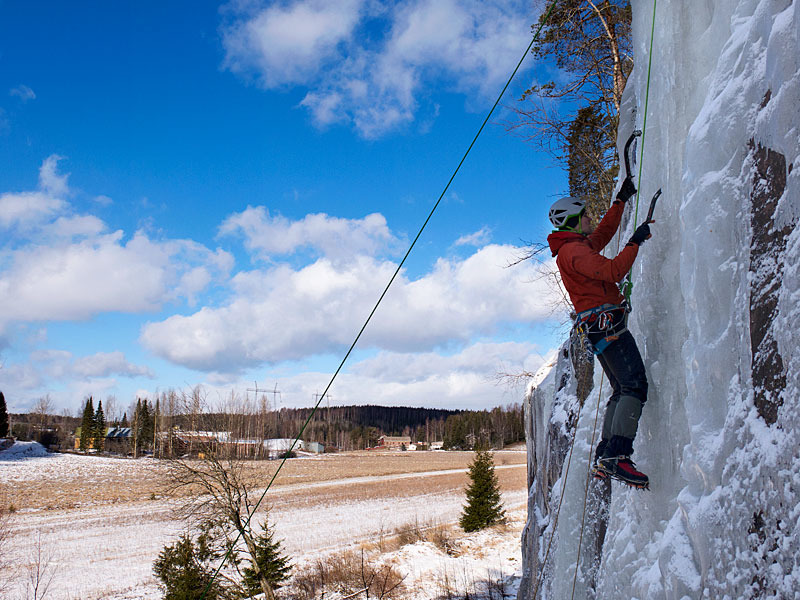 Angelniemi is located in the Meisala area of Salo. Angelniemi is an old ice climbing destination, that was developed for broader summer climbing use in the beginning of the 2000s. The climbing here is delicate and requires both balance and good footwork. The rock is relatively finger-friendly and the cliff face is located at a peaceful spot. Most routes here are on the harder side. During the winter, an icefall forms (thus the ice climbing).