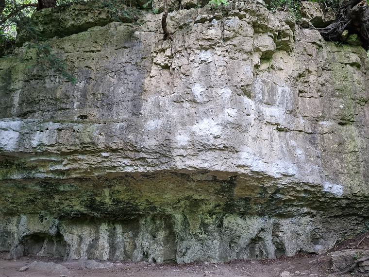 Sit start under the roof, just left of the bulging prow taken by the finish of Beretta. Hard moves on pinches lead through the roof and a slap to the lip. Finish up the left of the prow.
