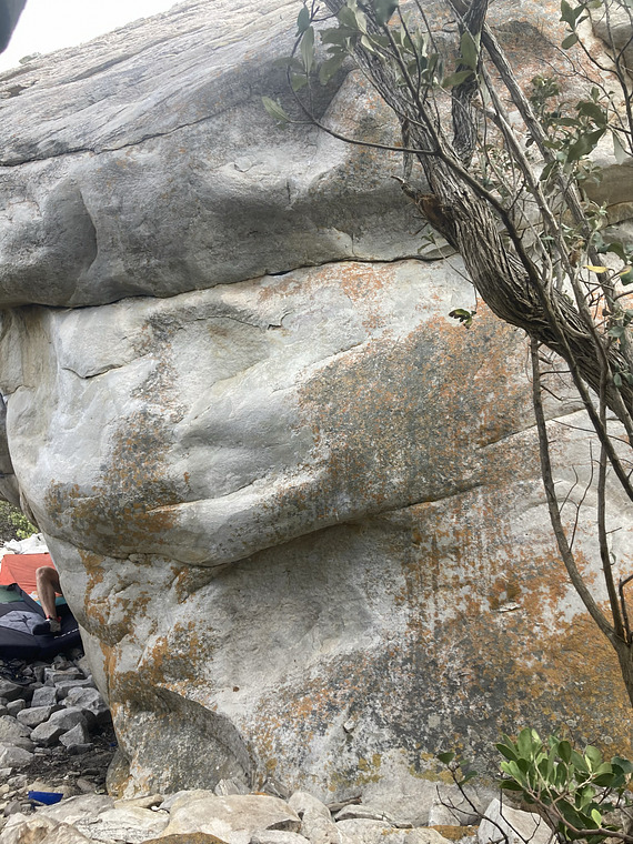 Sit start in undercling, climb over lip and onto the slab