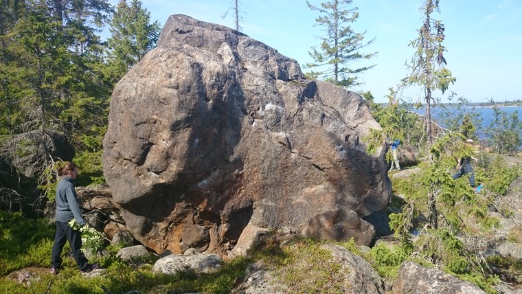 Sittstart på lilla stenen. Starthänder i pockets. Urtoppning till vänster.