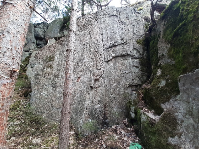Climbs on the left of Huijarin halkeama. A tad harder ending with not as nice landing as its neighbour.