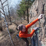 This steep mini-wall is decently nice located a bit up on a slope, with some glimpses out over Lake Värtan. The wall is no more than around 8 meters high but is overhanging and with bouldery routes with quite a lot of crimps. You should therefore have strong fingers to get something out of a visit, otherwise, the risk is that you do not lift from the ground, even on the easier routes. In 2017, most of the routes were renovated and also equipped with much-needed anchors. No super quality on the slightly rust-brown rock, but it is suitable for a shorter stay.