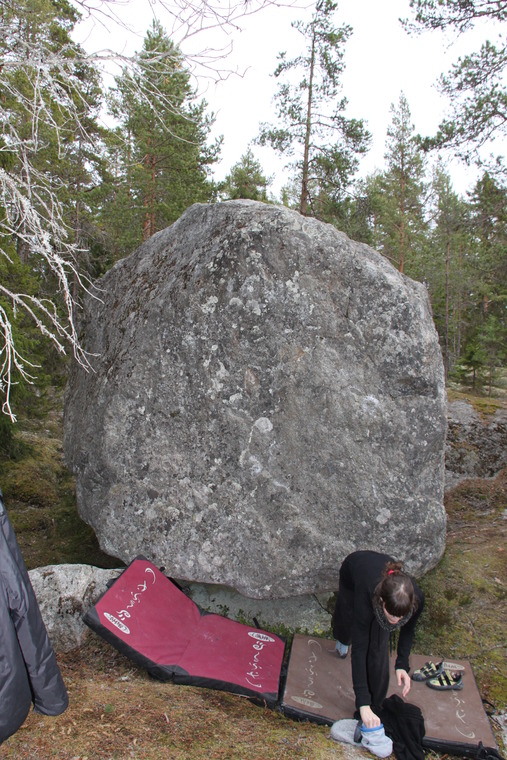 Left side of the arete. Don´t stand on the rocks below.