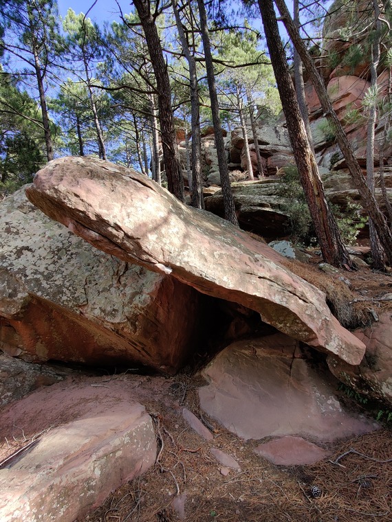Pumpy boulder; perhaps more like 6B for people who listen to techno music in the forest (which you shouldn’t do by the way)