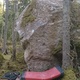 Sittstart till vänster om stenen. Hangla till vänster, runda kanten och toppa ur.