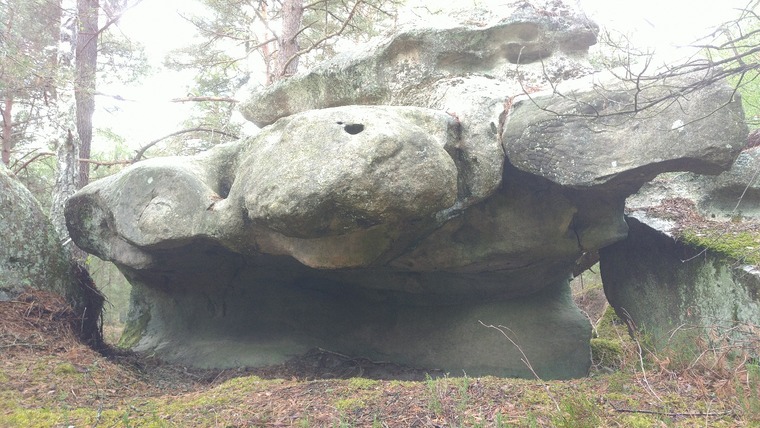 Sitstart or crouch start in the back of the roof. Start with both hands in the big hole to the left. Follow the holes to the right, join House-Tier, top out House-Verbot.