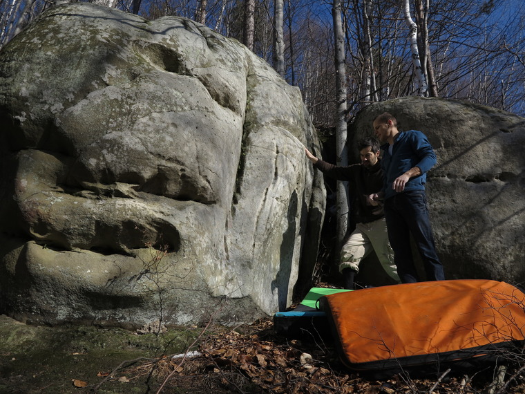 Bouldering Bratilesti "Ciclopul" 6B Costin warm up