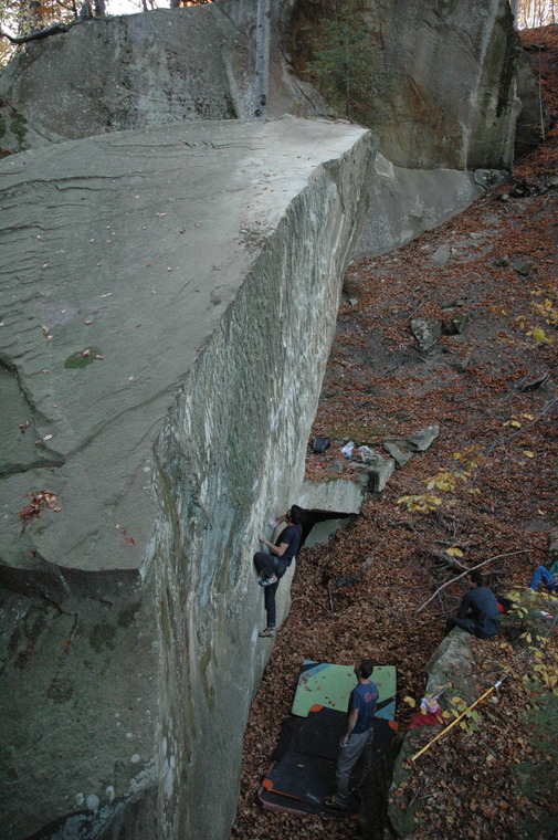 Hard and tall project around 8A+. Please be aware, that due to the fact that the boulder is on the river bed, the scenary and thus the boulder lines, might chenge in time!