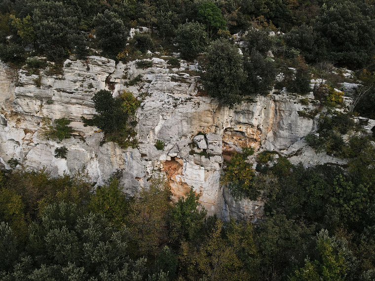 A vertical wall with small holes, a slight and technical overhang and a vertical exit.