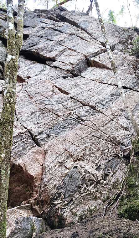 (5a) Intro route "Bondpermis" (farmers furlough) which means to be illegally at home from work (often from military service). During the 2019-2022 pandemic, this was applied a little generously. So this route is a reminder of that. It offers wonderful climbing with great grip. 5 hangers + chain anchor with 1 carabiner .