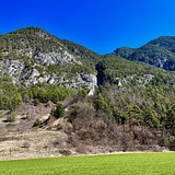 The Crag is located on the left side of a narrow limestone canyon. The grey, grippy limestone has crimps and pockets. There are a few multi pitches among the routes. The right part of the wall is unfortunately hard to reach, the upper sector has most of its routes as a second pitch. There is a fixed steel rope traversing the middle of the upper sector wall, marking the beginning of the second pitch routes. This via ferrata style steel rope meets the bottom of the canyon right at the end of the right-most sector. (Topo image 4)