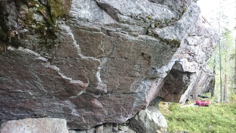 Ett härligt boulder där kraft, tajming och mod krävs.