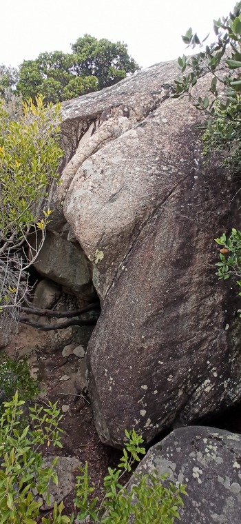 Start from two crimps. Goes around the boulder to the other side.