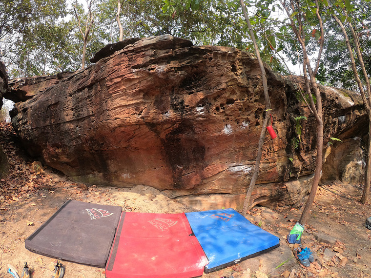 Sit start on a good jug near the tree. Left hand goes up and cross right hand under. Move left. Cross right hand over to reach high. Then top out.