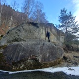 There are two separate boulders in the forest, one being named "Tiktaalik, 7C", which was cleaned and climbed by George M. and Andrei N., and one boulder with multiple routes being dubbed "Tatal lor", which was cleaned and climbed by Vali C. and Daniela S. starting August 2020.