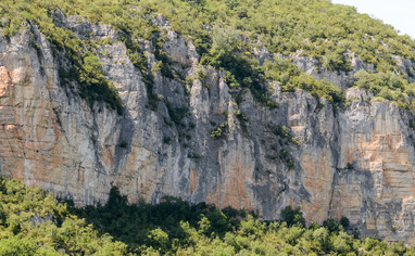 Nice tufa climbing. Short steep and 'ard. The left side goes in to the shade in the afternoon. Seeps, but not as bad as La Croix.