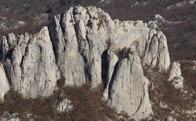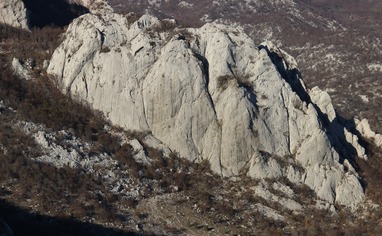 Start from the Adriatic Highway in the town of Karlobag. From here head to Gospić and after 10 km, before entering the hamlet of Sušanj, turn left for the hamlet of Ledenik and mountain hut Ravni Dabar. Pass the hamlet and continue to Ravni Dabar. After 6.5 km you will arrive to the mountain pass Dabarska kosa from which crags Kuk od Korita and Rujičin kuk are in sight. The road now becomes unpaved – continue to follow it until reaching the narrow gorge between the two crags. Leave the car here if you plan to climb in walls of Kuk od Korita and Rujičin kuk. For other crags continue further the road – use the attached map for more details.