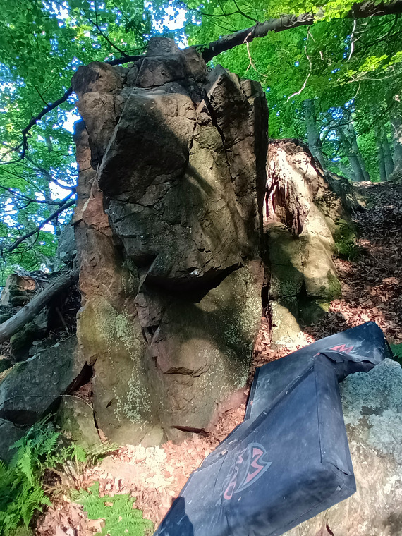 Sitt start med vänster på ett ganska snällt grepp långt ner o höger crimp på högra sidan av väggen.