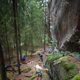The crag has now again come into the spotlight, and some of Stockholm's most talented sports climbers have begun to discover the cliff's potential for challenging sport climbing routes. Scott Mooney made the great bouldery route I Scottlinjen (8b +), and Stefan Petersson managed in 2019 to free climb the old AID-route "A bunch of angels and some other shit" (A1+), a striking overhanging crackline. There are also some very nice newly made routes done by Tiziano Buccella, Iain Pitcairn, Rasmus Johansson, Nils Winell, Robin Dahlberg, and Viktor Gyllenberg. Most of the new routes are made south of Apocalyps wall outside the nature reserve boundary. The old mixed routes inside the nature reserve are still waiting to be fixed (with permission from the municipality).