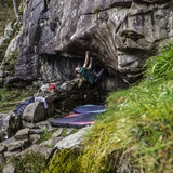 It is slightly ironic that such a monolithic and obvious crag should play host to such a small and intense cave but such is the way of bouldering and this crag certainly packs in the grade! Not for the feint of heart, Elephantitus Cave starts at a burly and intense 7a that can provide levels of warm up just enough to get you fired up for the next hard line on the ticklist.