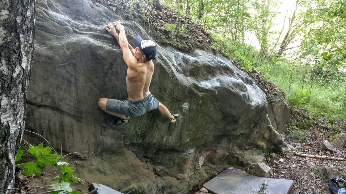 The small face is home to 6 quite nice boulder problems. The face is in the shade all day, so it might be a good choice for warmer days.