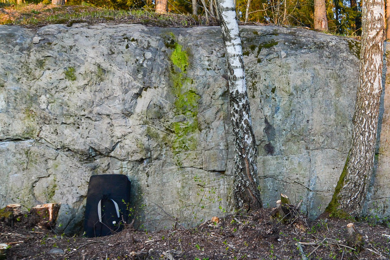 On the Right from Tyhjä taulu and 1m - 1,5m left from Alkukevennys. Easiest start from two sidepulls quite far apart. At the right side of the tree stump.