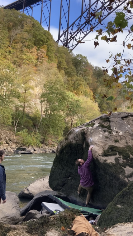 This is a brand new area between Fayette Station and the Sunshine Boulders. It makes the riverside walk to the 1, 2, Punch Boulder (Sunshine) more palatable because now there are boulders to stop at along the way. There are many more problems here open for the taking. Some riverside boulder problems in this area (Copperhead, Patina Sisters, and Trim and a Haircut Boulders) are water level dependent. If the water level is around negative 1ft or below, all are easily accessible. See https://www.americanwhitewater.org/content/Gauge2/detail/id/43472/ for current water levels.