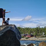 A beautiful crag with rocks and walls scattered along a polished granite coast.