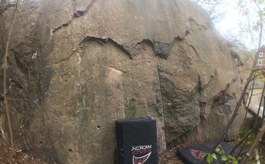 "Borrhål, metallpinnar i berg och mark, glassplitter och skräp. Allt man kan begära av citybouldering! Här får man även ett par mysiga slabbar och kvällssol om man har tur."