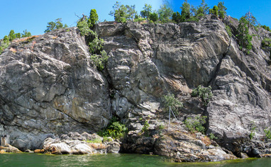To reach the Svaväggen DWS, take the same approach as to Lilla Grottan, but follow the waterline south to Svaväggen where you can reach the start of the DWS routes dry by walking over a rocky 'beach'.
