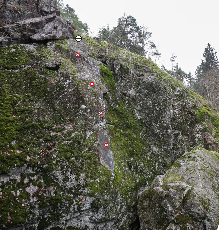 Bolted route on the slab higher up on a wall about 15 meters from Barnblocket.