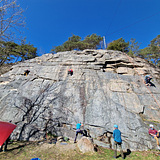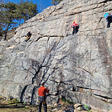 The wall features easy to moderate routes with fun and interesting slab climbing.