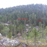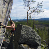 140km (2 hours) from Umeå right pass the small Society Fredrika is this sportcrag that contains some scattered walls along a small mountainside.