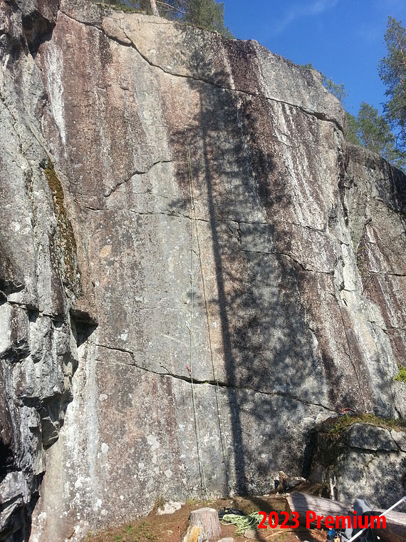 Vertical technical climbing on small crimps to the obvious crack/flake at the top where hands get a treat, but the feet still must work on tiny stuff.