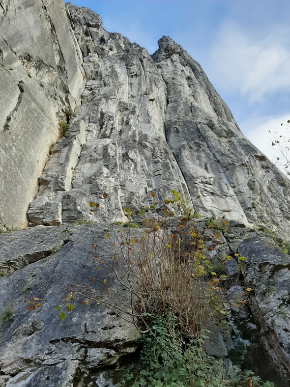 Used to be a complete trad route, now completely bolted... You can combine it with Le Scarabée. Polished.